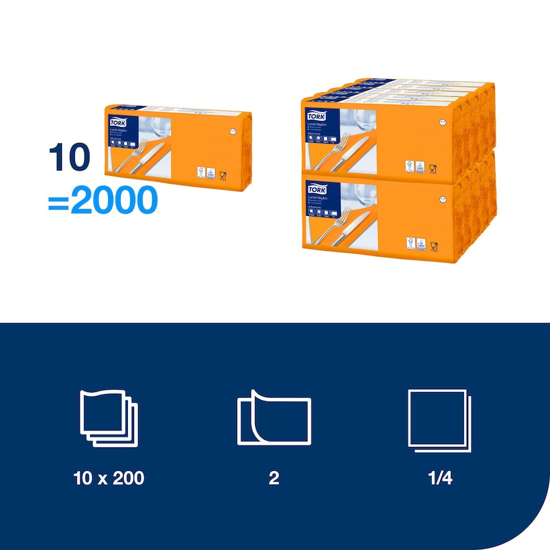 A Tork Lunch szalvéták elsősorban könnyű ételekhez illenek. Többféle modern és klasszikus színben kaphatók, így kiválóan illeszkednek bármelyik étterem színvilágához.