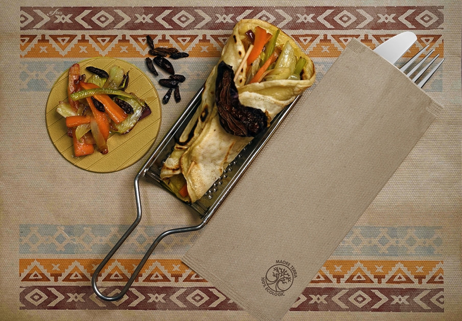 Evőeszköztartó Madre Terra 100% eco, 2 rétegű 38c38cm fehér szalvétával 100db/csomag (8csom./karton)