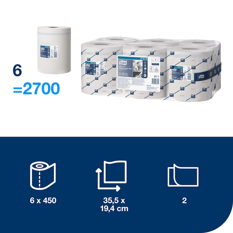 Reflex PLUS Fehér törlőpapír 2 réteg belsőmagos 450lap/tekercs (6tek./kart.) M4 rendszer Tork Advanced