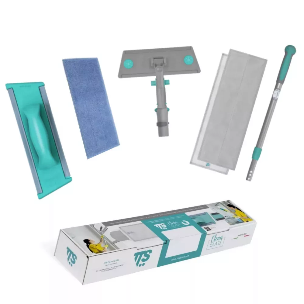 Clean Glass - PRO Kit ( tépőzáras tartó + nyeles tartó+ mikroszálas mop2 db + mikroszálas kék mop 1 db+ teleszkópnyél)